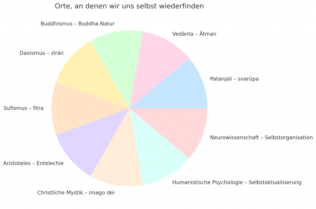 Aristoteles’ Entelechie und Patanjalis Satz tadā draṣṭuḥ svarūpe’vasthānam („Dann ruht der Sehende in seinem eigenen Wesen“) beschreiben dieselbe Erfahrung aus unterschiedlichen Blickrichtungen. Beide gehen davon aus, dass ein inneres Prinzip im Menschen wirkt, das nicht hergestellt werden muss, sondern sich entfalten will, sobald Störungen nachlassen.